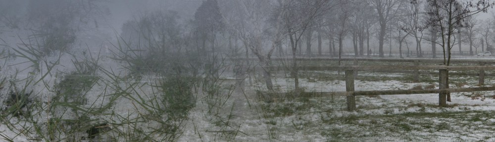 south inner 12 minutes The Drive Moor Crescent High Street Dukes Moor Open grass alternating sun and wind driven snow squalls the far hill disappears in the blizzard Walkers throw a ball for their enthusiastic dog